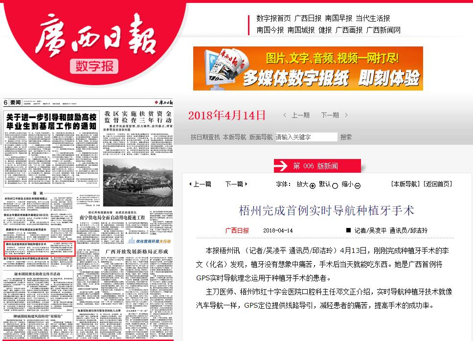 出處:《梧州完成首例實時導(dǎo)航種植牙手術(shù)》