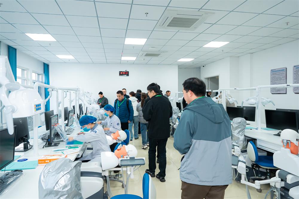The person in charge introduced the development history of Yantai Stomatological Hospital and the composition of the oral health education base in detail, and led everyone to the demonstration classroom, the basic laboratory of the dental simulator and the dental clinical skills training room to observe and exchange.