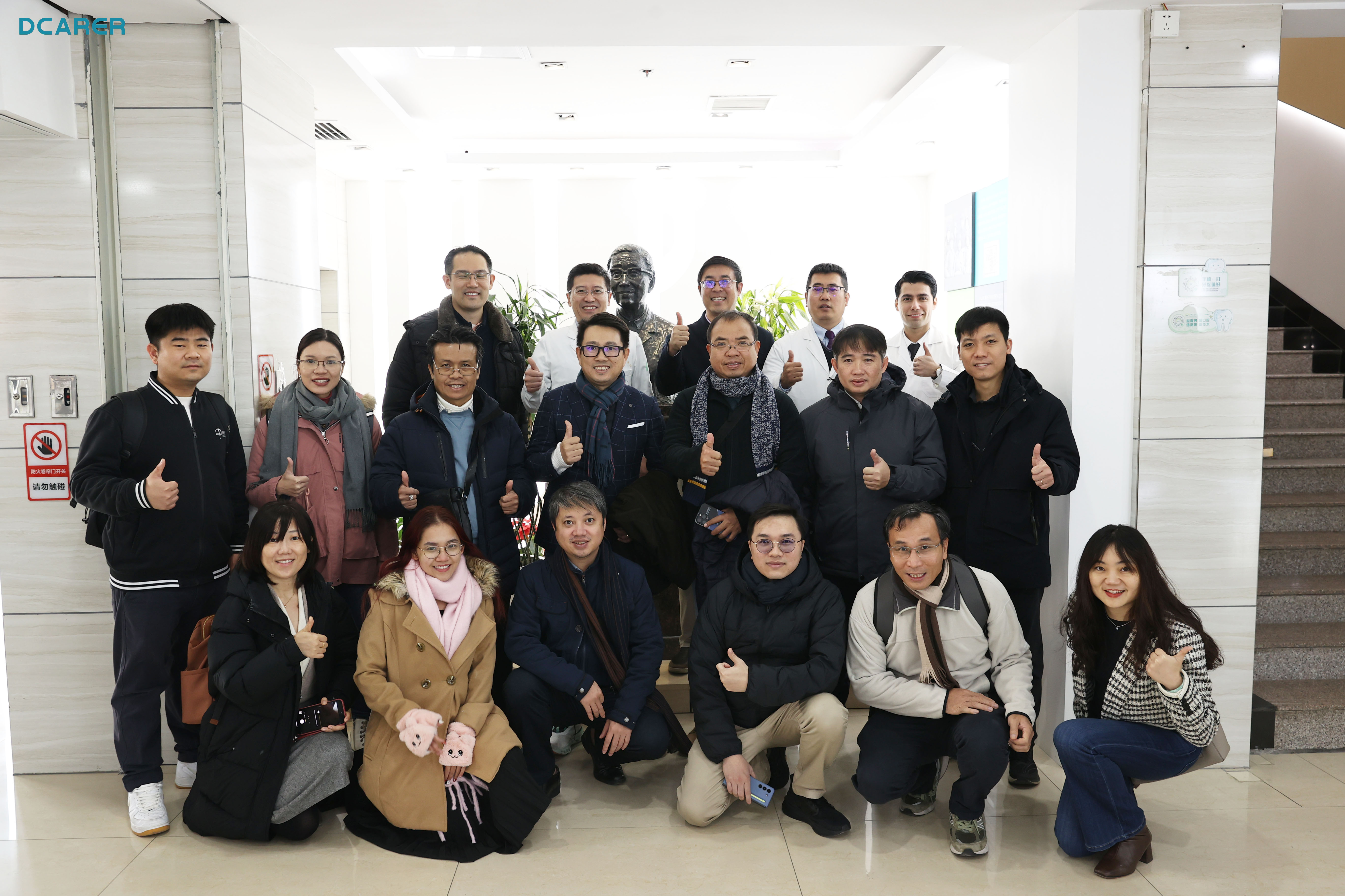 During the visit to the main campus of Xi'an Jiaotong University, Vice Dean Tu Junbo introduced Professor Dong Shufen, the founder of Xi'an Jiaotong University, in detail, and took a group photo in front of Professor Dong Shufen's sculpture. Director Nasijia gave a detailed introduction to the clinical medical and auxiliary departments, digital practice operation platform, digital R&D platform, smart ward, disinfection supply center and other departments of Xi'an Jiaotong University.