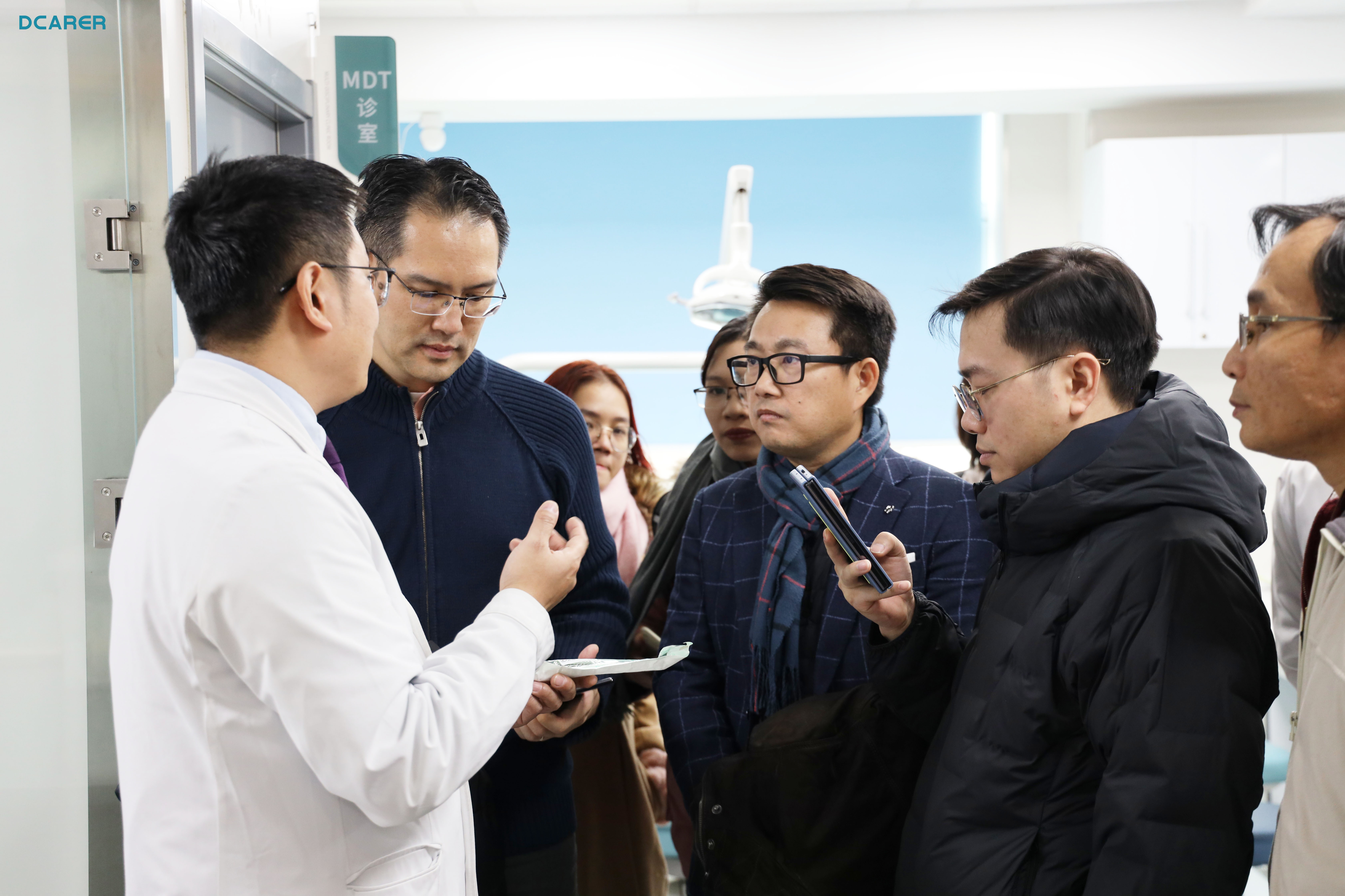 The discussion focused on the development of digital stomatology and the construction of digital dental hospitals. Tu Junbo, vice president of Xi'an Jiaotong University, Na Sijia, director of the Oral Surgery Clinic, and Liu Zhongbo, deputy director of the Stomatology Research Center, accompanied the visit and discussion.