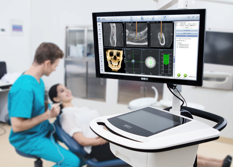 主動(dòng)式紅外光種植導(dǎo)航——易植美,該系統(tǒng)用于口腔種植手術(shù)的術(shù)前計(jì)劃和術(shù)中引導(dǎo),通過(guò)對(duì)三維醫(yī)學(xué)影像的虛擬可視化應(yīng)用,采用專門的種植手術(shù)方案規(guī)劃軟件在三維模擬環(huán)境中進(jìn)行合理的種植方案設(shè)計(jì),結(jié)合精確的紅外光學(xué)定位技術(shù),實(shí)現(xiàn)手術(shù)器械、醫(yī)學(xué)影像和人體空間位置的融合。整個(gè)手術(shù)過(guò)程系統(tǒng)實(shí)時(shí)呈現(xiàn)病人解剖結(jié)構(gòu),全程監(jiān)控種植位點(diǎn)、角度、深度,從而實(shí)現(xiàn)精確種植。